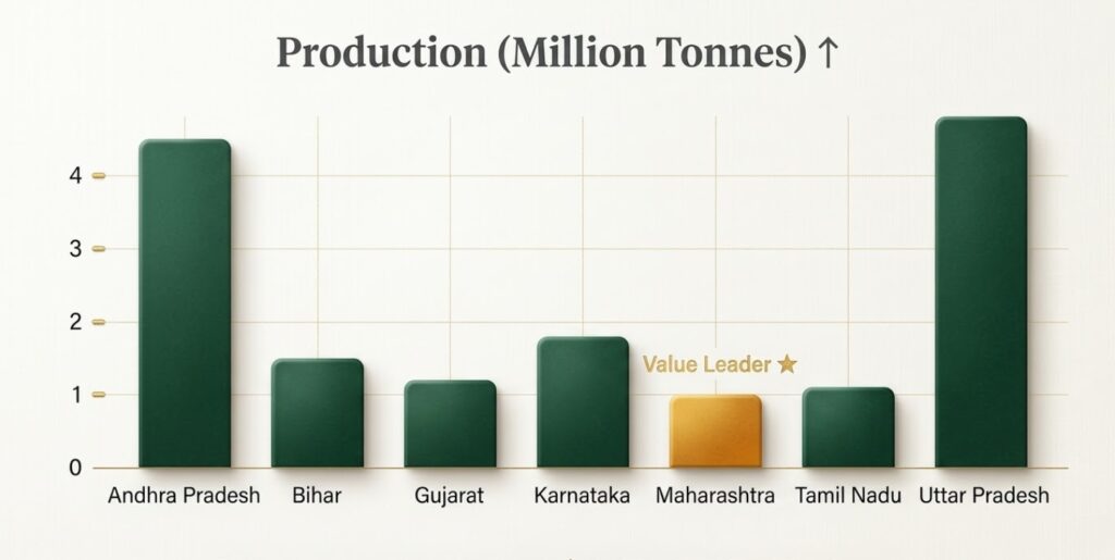 States like Uttar Pradesh and Andhra Pradesh dominate the national agricultural map in sheer volume.
